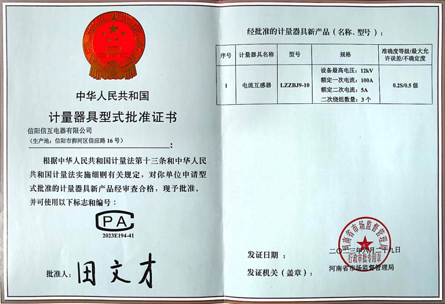 河南信陽信互電器有限公司(電力互感器制造廠)是機械、電力行業生產企業,“信互”牌互感器系列產品被評為“互感器”。曾擁有制造計量器具許可證、計量器具合格證書、防爆電氣設備合格證,企業被推薦為《全國城鄉建設與改造所需主要設備產品及生產企業》。是《變壓器》、《互感器》、《組合式互感器》國標導則宣貫的單位之一、輸變電協會互感器分會會員,報沈陽變壓器研究所備案的互感器生產單位。擁有“信互”牌注冊商標。